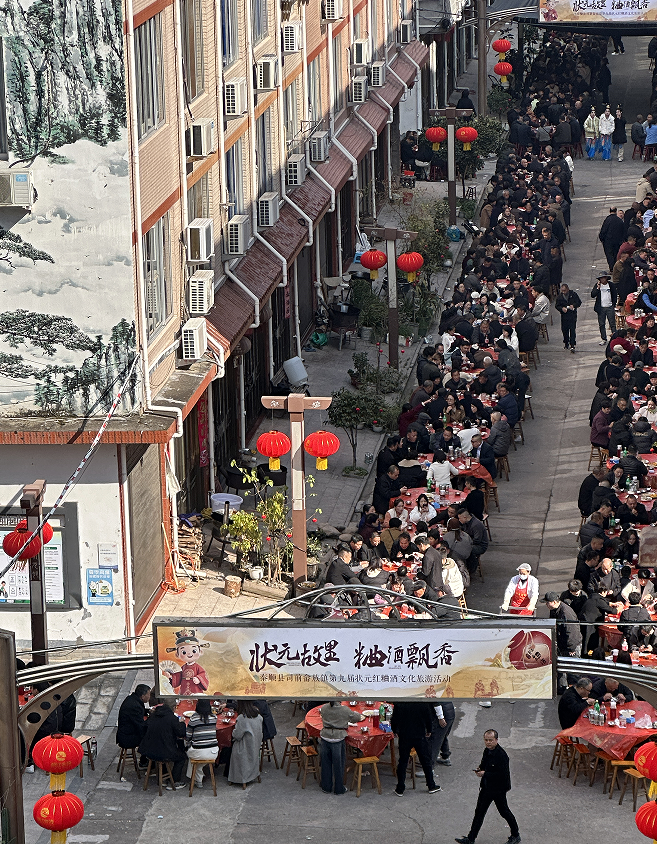 现场村民齐开酿,点火蒸米、培粬发酵,再现传统红粬酒制作全流程。200多桌状元宴座无虚席,吸引了众多市民走进山水秘境,品味非遗酿造技艺,体验状元文化的独特魅力。特别是“状元宴”,每桌配有红粬酒,菜单融入红粬酒入馔特色,宴间赏畲族敬酒歌,沉浸式感受民俗热情。