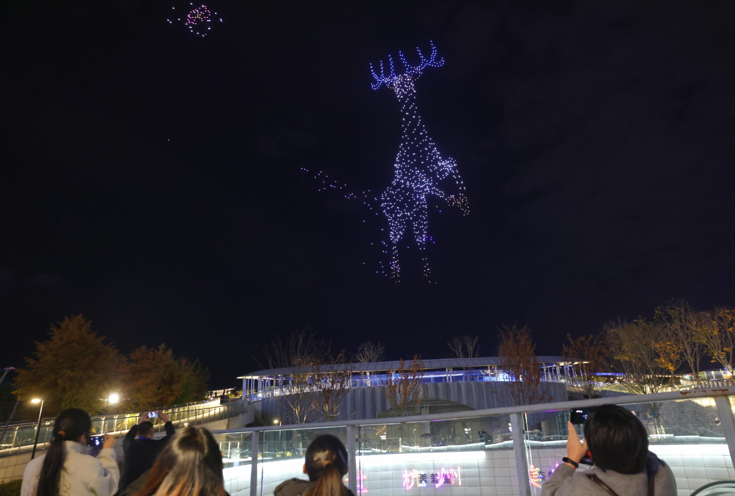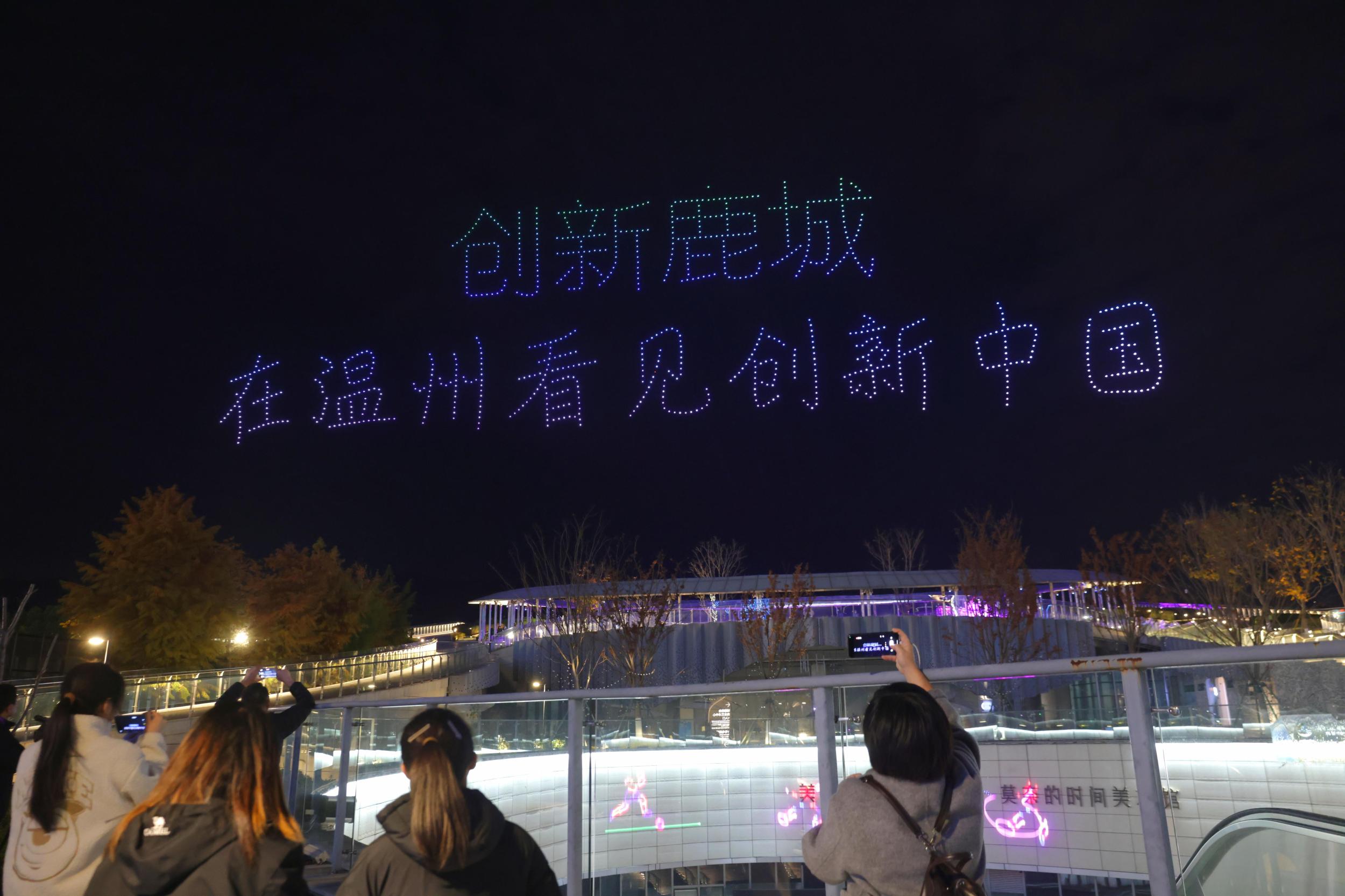 12月13日晚,温州市区城市阳台,1000架无人机升空,连续变幻出“白鹿衔花”“星空”“在温州看见创新中国”等造型,在空中呈现出了“天空之城 融媒之美”的主题。