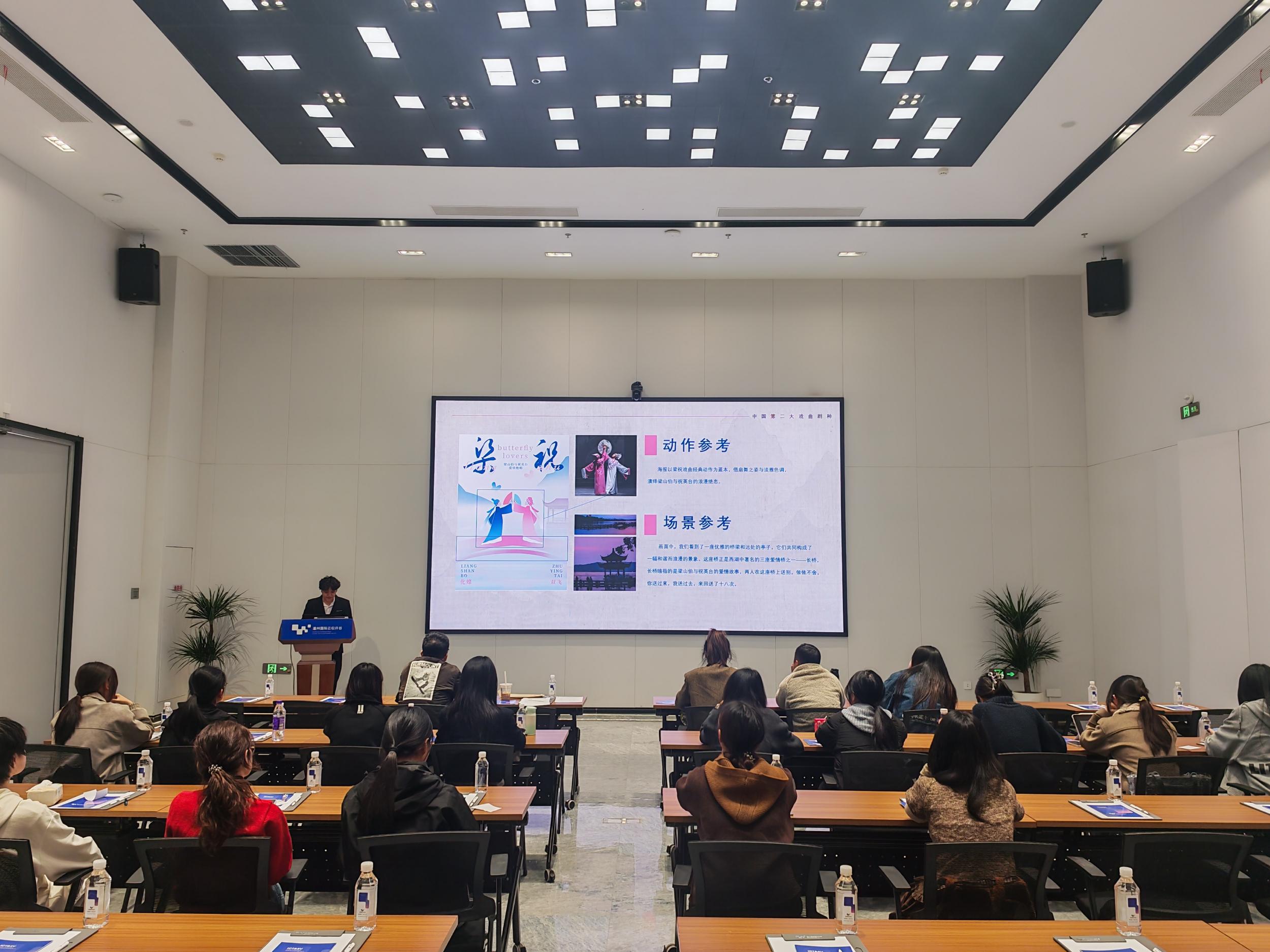 决赛现场,参赛选手通过PPT汇报详细阐述创作思路,将非遗文化符号与现代海报设计语言巧妙融合:部分作品以极简线条勾勒传统艺术神韵,部分通过撞色搭配呈现时尚质感,另有多组作品运用动态效果、数字技术等数智手段,实现了非遗文化的动态化、可视化表达,展现了青年学子对传统文化的创新诠释。