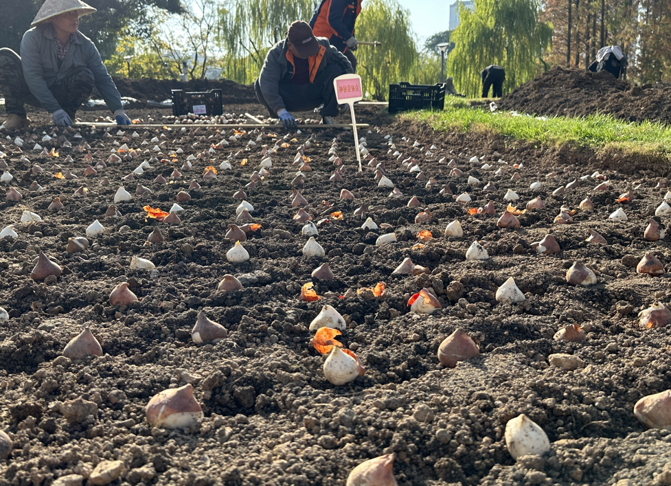 12月26日,“‘郁’见园博,共植春天”——“大手拉小手”马鞍池公园郁金香种球种植活动在市区马鞍池公园北门大草坪举行。此次活动也标志着今年全园约31万个郁金香种球开始种植。本次郁金香种球种植活动,旨在积极营造“全城园博,全民参与”的氛围,为明年花展预热,为园博应援。马鞍池公园第23届郁金香花展作为第十五届中国(温州)国际园林博览会鹿城分会场的重要展示节点,以“山水温州”为设计主旨,融入“城市公园、人民园博”的办展理念。此次活动由鹿城区综合行政执法局、鹿城区园林绿化管理中心主办。温州芬妮特恩森林农场为支持单位。