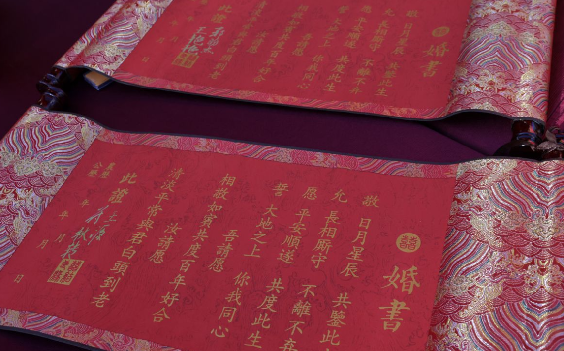 在婚礼仪式上,新人们一起签署婚书并交换信物,还将取自九山湖的湖水注入容器,暨寓意着新人合一“情融于水,爱汇成家”,也有年年有余的祝福,也隐喻警民关系如鱼水之情相互依存、密不可分。