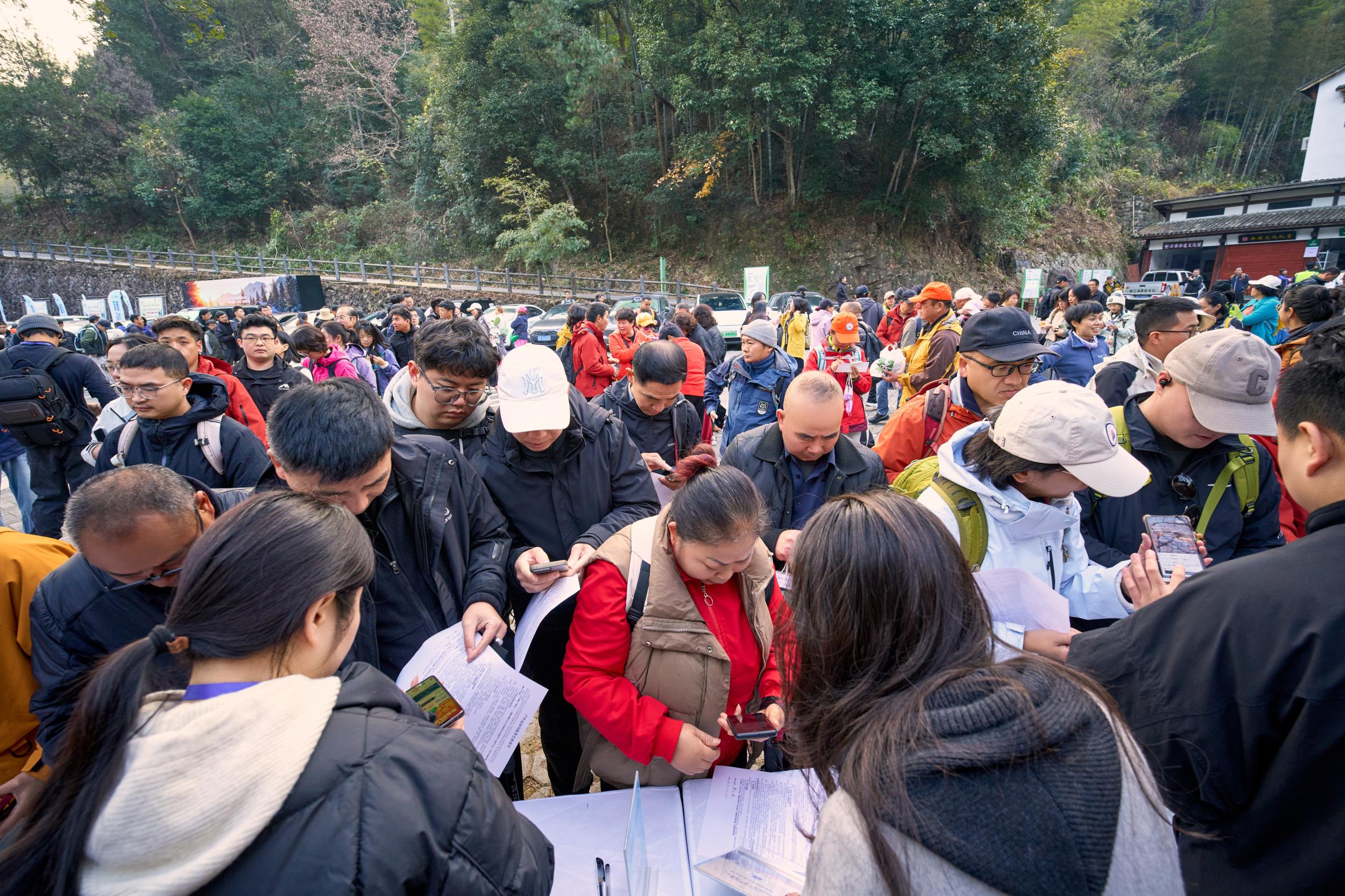 活动现场氛围热烈,徒友们手持多功能券早早集结。暖场表演点燃氛围,家属爵士舞与徒友演唱轮番上演,掌声不断。泽雅镇副镇长金佩洁致辞,她介绍全程约10公里的徒步线路——穿越七瀑涧4A级景区核心区,沿途负氧离子充沛,是天然的森林康养步道。她着重强调森林防火安全,呼吁大家践行文明徒步、绿色康养。
