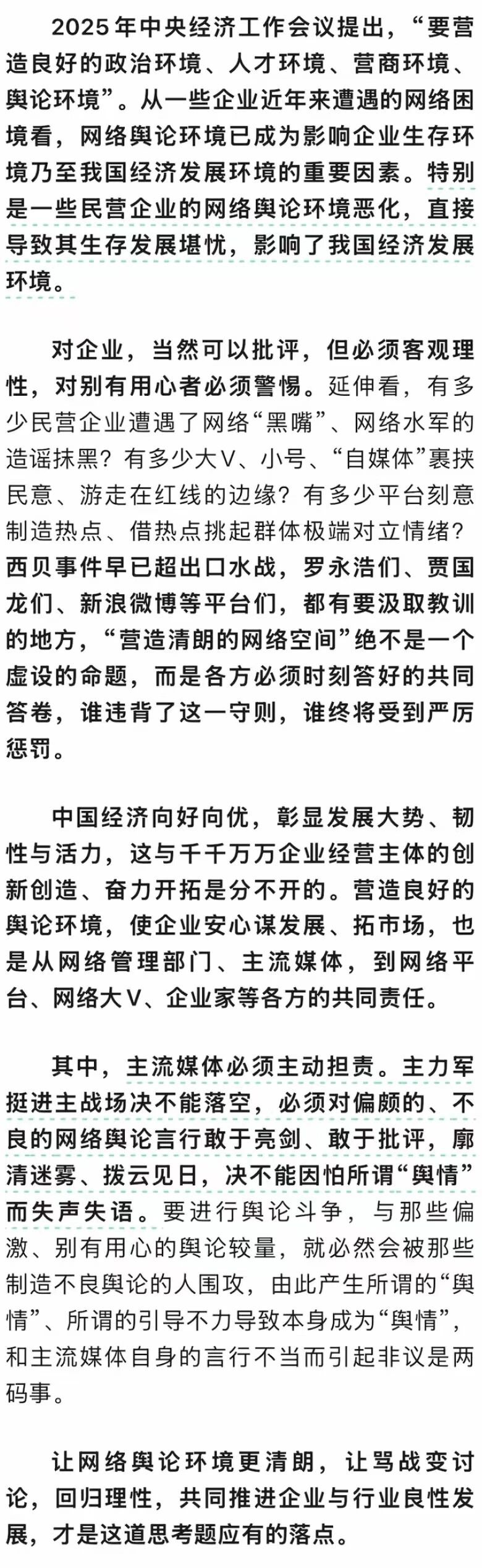 1月18日,人民日报评论发文称,一场网络大V与知名企业人士的网上纷争,以西贝宣布“将关闭全国102家门店”、两人新浪微博账号均被禁言暂告一段落,但深层次的思考不应该缺席。
