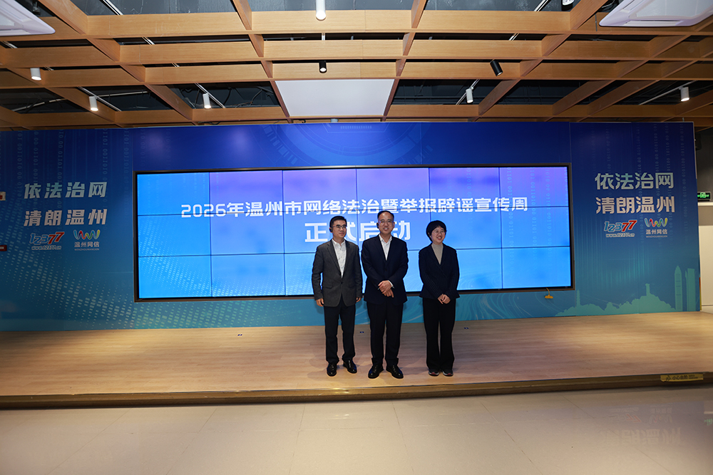 温州网1月27日讯(记者 温婉)1月27日上午,以“依法治网 清朗温州”为主题的2026年温州市网络法治暨举报辟谣宣传周正式拉开帷幕。中央网信办违法和不良信息举报中心主任狄多华,中央网信办违法和不良信息举报中心副主任朱吕,温州市委宣传部副部长、市委网信办主任张其煌等参与启动仪式。