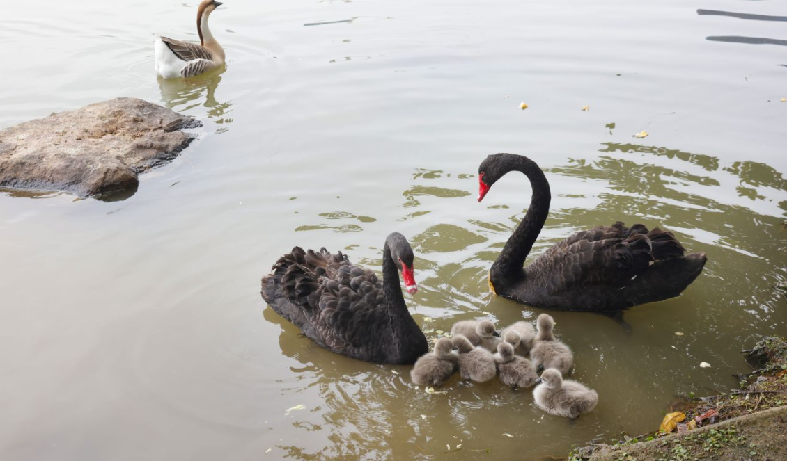 据悉,自2014年与温州动物园合作引入首批水禽以来,公园“水禽家族”便不断繁衍壮大。如今,公园奥水湖已成为80多位“居民”的和谐家园:黑天鹅、大雁、绿头鸭与赤麻鸭,还有小??……它们与碧水晴空相映成趣,构成一幅流动的自然画卷,成为市民游客最喜爱的公园景观之一。
