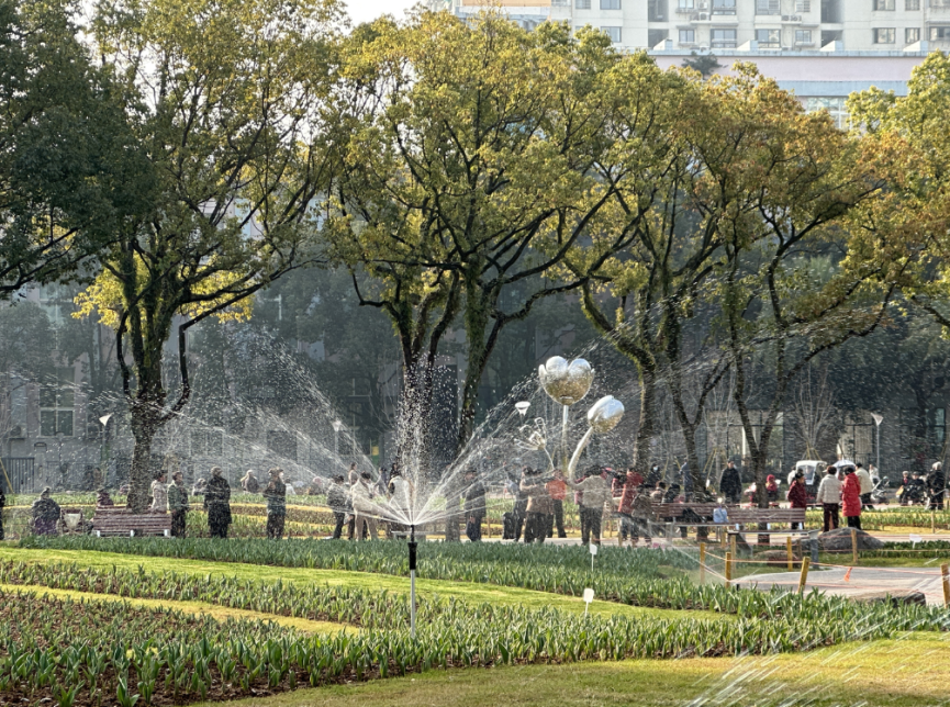 近日,温州市区马鞍池公园郁金香主展区的56个智能自动喷灌装置全面完成安装与调试,并正式投入使用。此次智能灌溉设施的引入,不仅为郁金香等花卉的生长提供了稳定可靠的水分保障,也为未来应对季节性养护高峰、打造更高品质的园林景观奠定了基础。