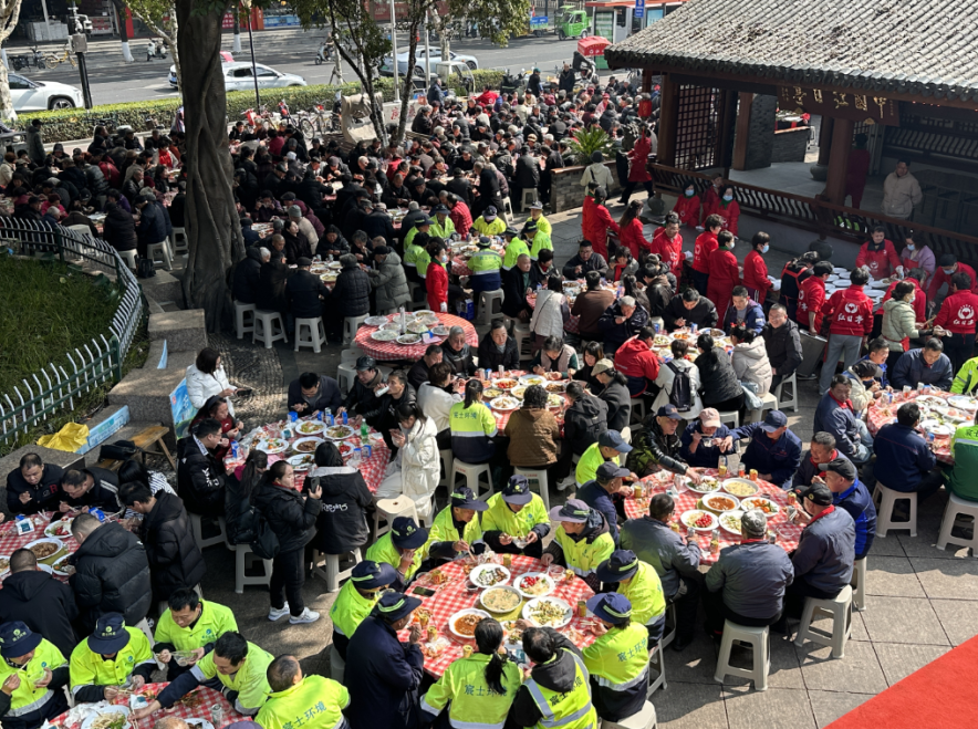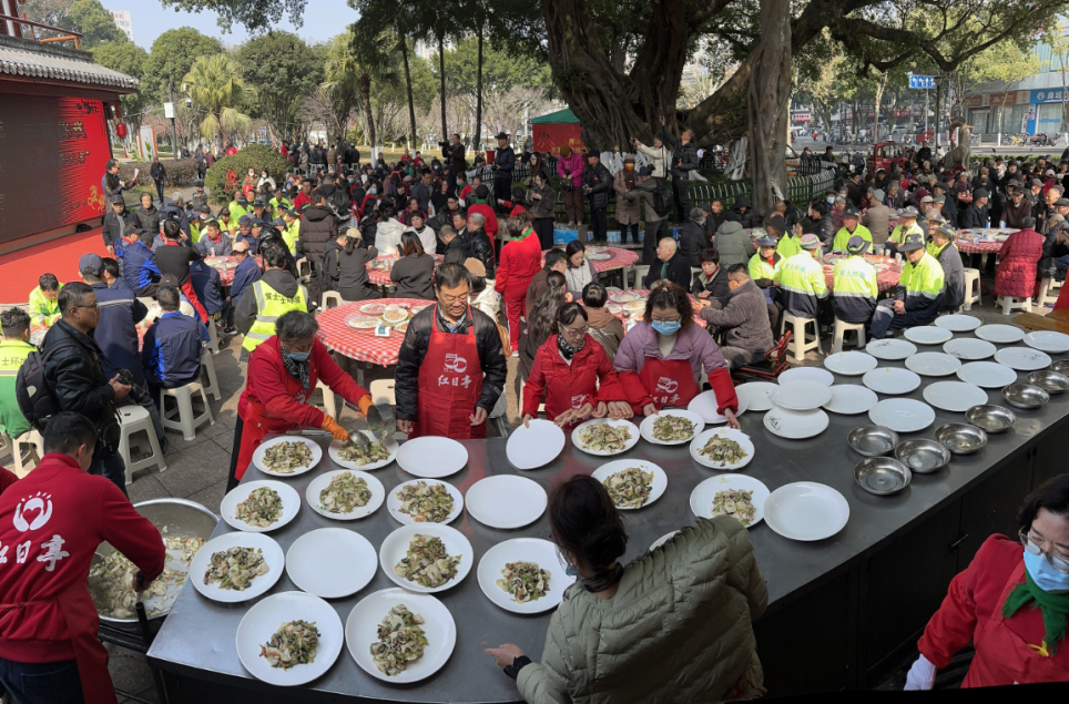 2月12日,第十一届“红日暖冬·迎春慈善大宴”在红日亭华盖广场举行。现场为环卫工人、残疾人、孤寡老人等弱势群体摆下50桌团圆饭,让他们吃个热热闹闹的年饭。该活动由鹿城区慈善总会指导,红日亭公益慈善会主办。