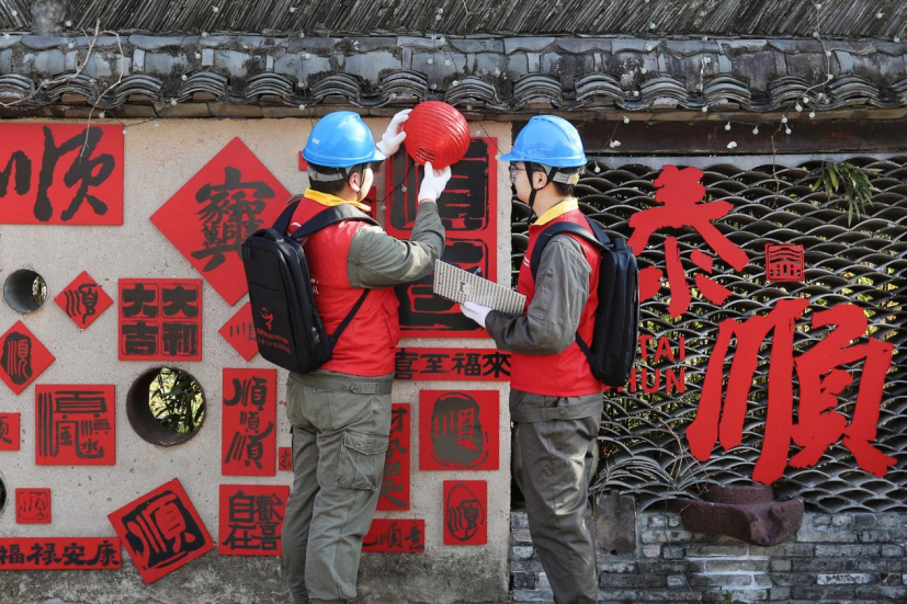 温州新闻网讯:2月12日,春节临近,泰顺县罗阳镇交垟土楼内张灯结彩、年味渐浓。为保障节日期间群众用电安全,国网泰顺县供电公司组织工作人员走进土楼群落,开展节前用电隐患排查和安全用电宣传服务,用细致周到的行动守护群众安心过年。