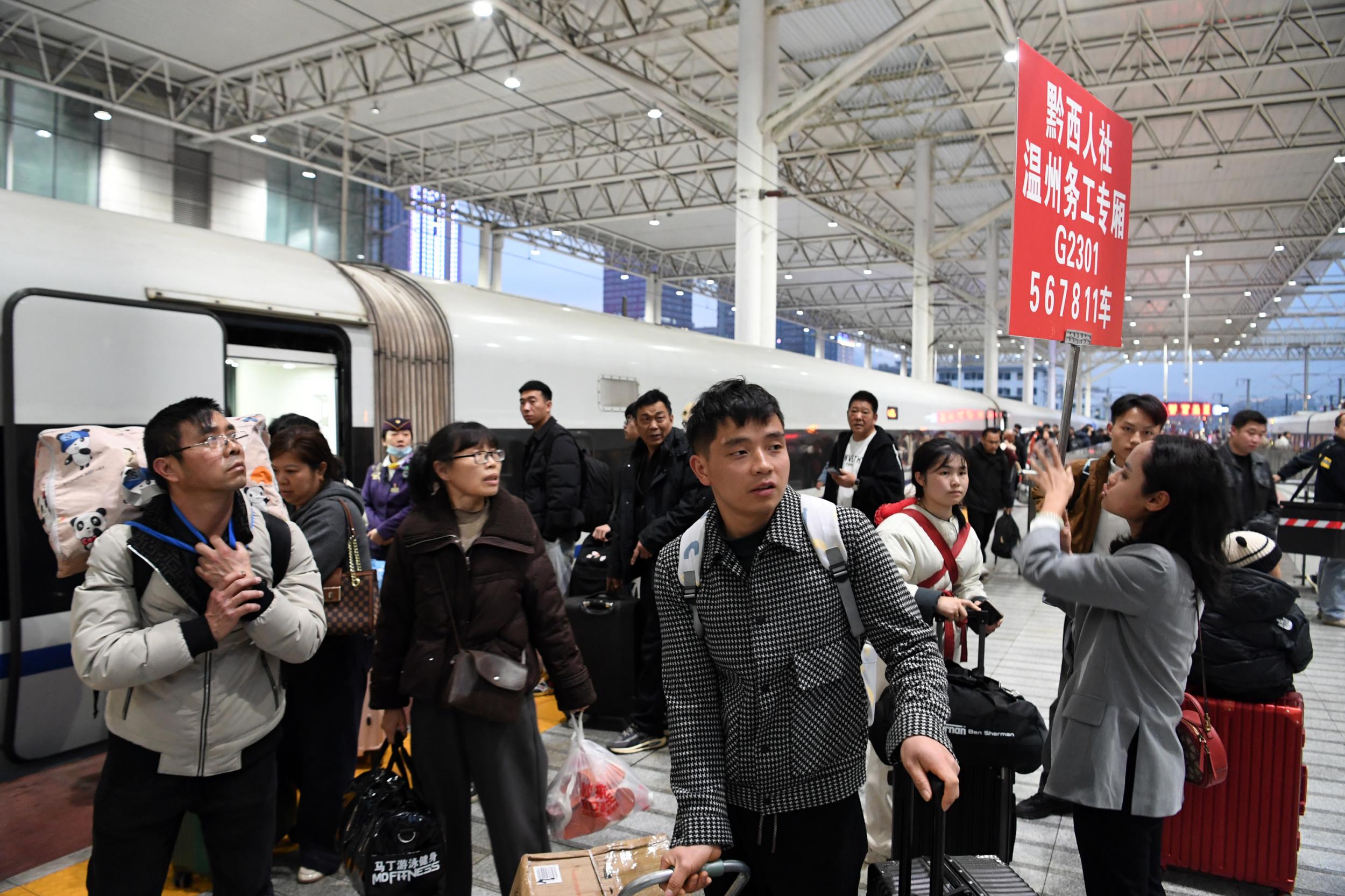 据悉,黔南州赴温州“开往春天的专列”G2308次返岗高铁,当天上午9点12分从贵阳东站出发,于当天18点23分抵达温州。