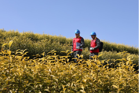 在金色茶海之间,红色工装格外醒目。电力保障不仅是对线路设备的维护,更是对地方特色产业的有力支撑。稳定可靠的电力,为每一片茶芽的萌发生长保驾护航,也为乡村振兴注入源源不断的动能。
