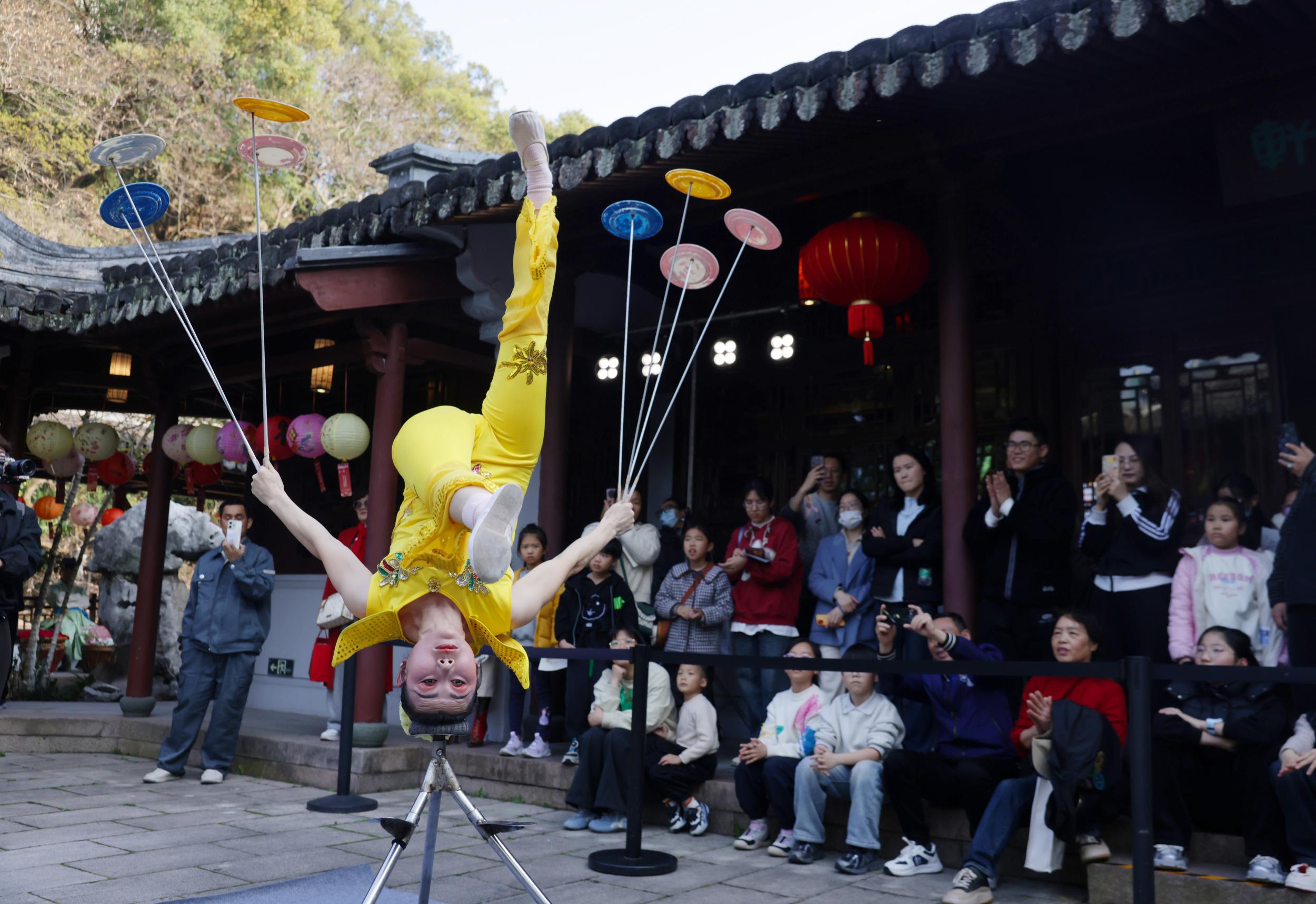江山胜览,灯映元宵!3月3日,当千年池上楼遇上元代温州的市井烟火,一场以元代画家王振鹏《江山胜览图》为蓝本的「江山胜览·百戏图」元宵主题活动在市区池上楼举行,参加活动的市民在现场亲身体验了《江山胜览图》所描绘的元代温州市井生活的一些活动场景。