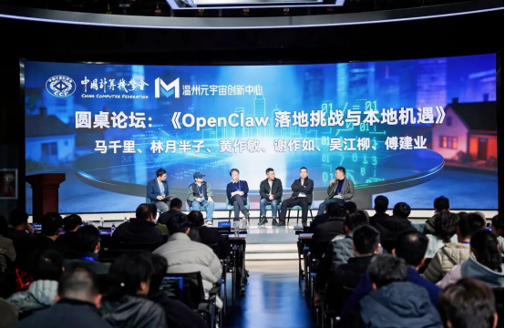 论坛围绕OpenClaw的价值定位、Token成本优化、与“一人公司”模式的结合、培训部署和咨询服务等商业机会,以及温州如何把握新一轮人工智能发展机遇等话题展开。与会嘉宾结合各自领域实践,就技术落地中的难点、应用场景拓展和本地生态建设等进行了交流。
