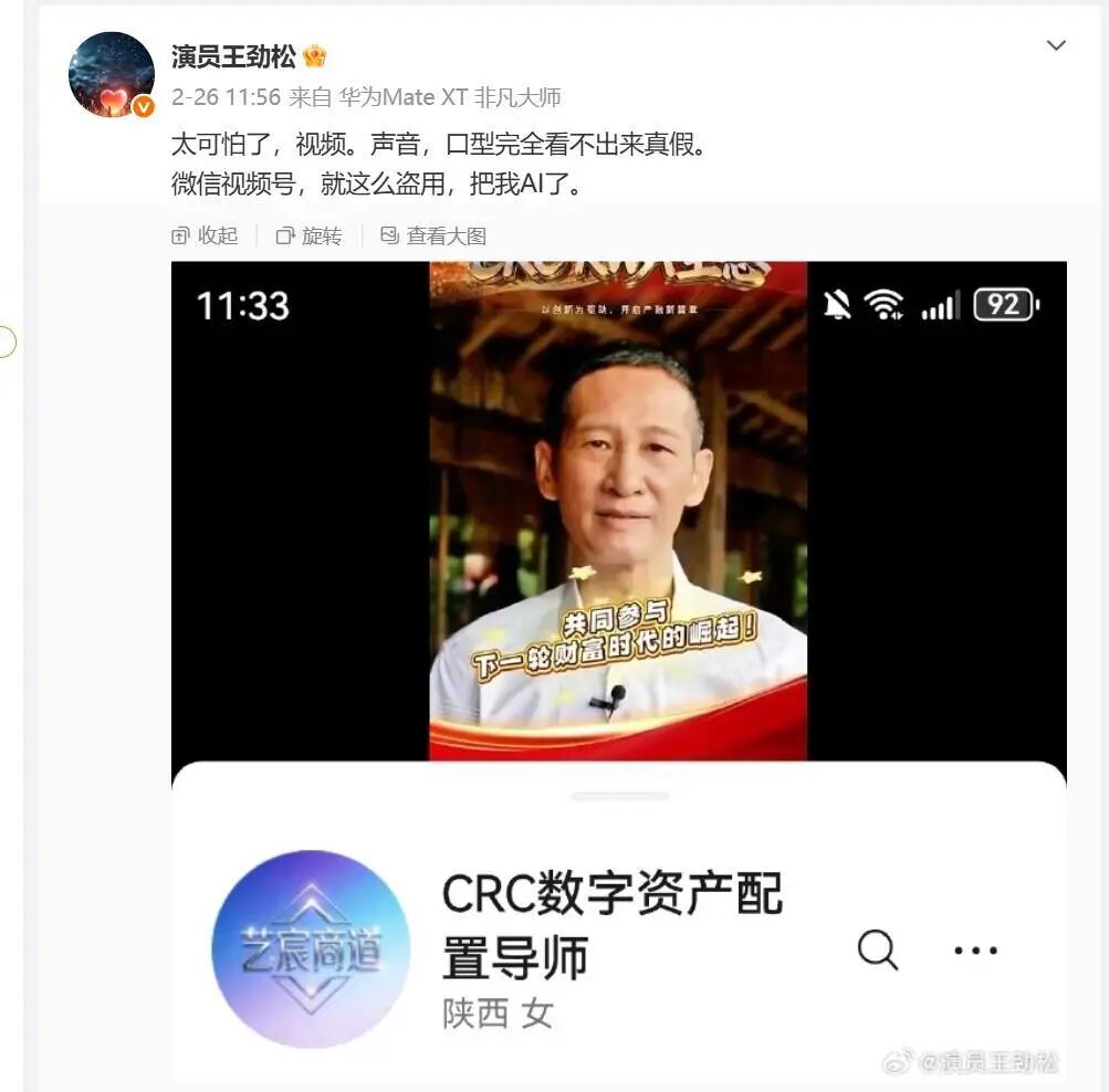 此前有知名演员自曝遭遇“AI换脸”,被用于理财推广视频,甚至连其亲属都难辨真伪。随之而来的是多家艺人工作室接连发声,表明维权立场。