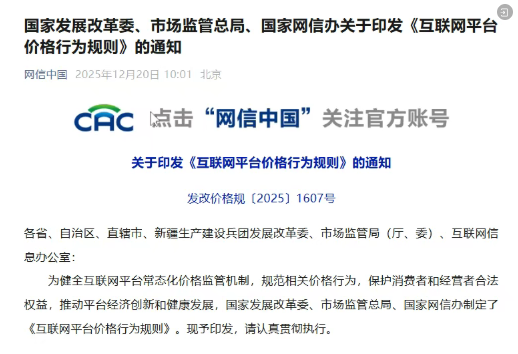 《互联网平台价格行为规则》
