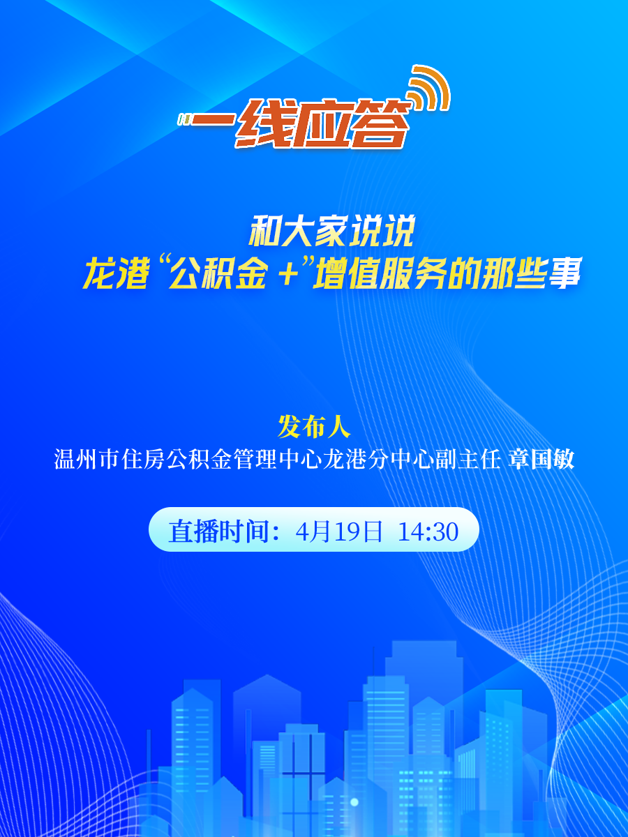 首期直播活动将邀请温州市住房公积金管理中心龙港分中心副主任章国敏,与大家分享龙港“公积金+”增值服务的那些事。广大网友可在4月19日14:30,锁定“温州发布”视频号直播间,在评论区实时互动提问。
