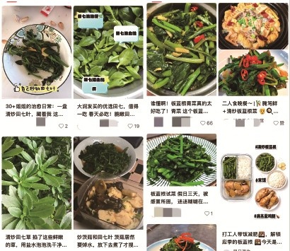 许多网友在社交媒体分享了新奇的春菜体验。